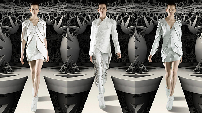 Recognized as one of the most innovative fashion labels today, threeASFOUR was founded in New York City in 2005 by Gabriel Asfour, Angela Donhauser, and Adi Gil, who hail from Lebanon, Tajikistan, and Israel, respectively. Having worked together since 1998 (under the label AsFour), the trio uses fashion to promote the need for human coexistence and collaboration, and fuses technology with traditional craftsmanship. The collective shows twice a year during New York Fashion Week and has collaborated with numerous artists and musicians, including Björk, Yoko Ono, and Matthew Barney. threeASFOUR’s designs are in the permanent collections of the Victoria and Albert Museum, the Costume Institute at the Metropolitan Museum of Art, and the Palais Galliera in Paris.